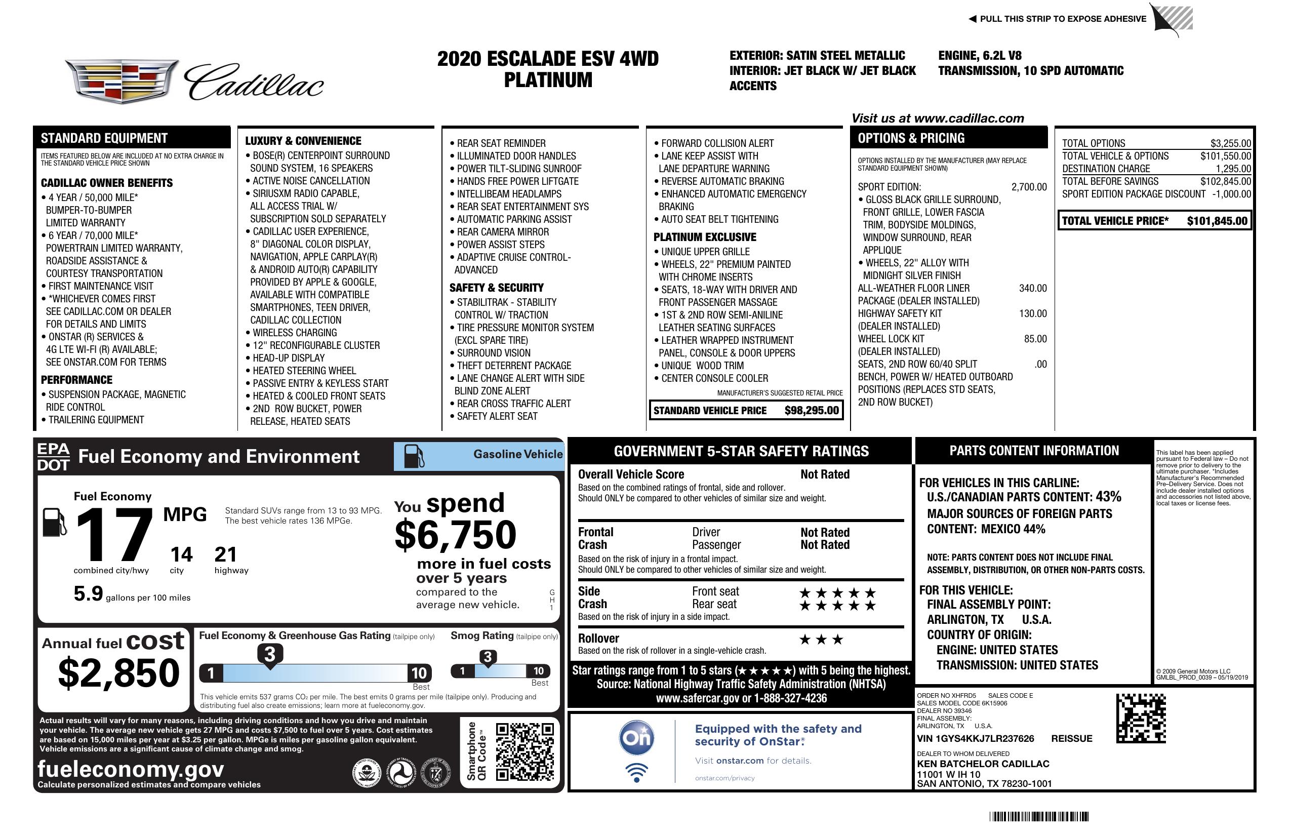 2020 Cadillac Escalade ESV 4WD 4dr Platinum